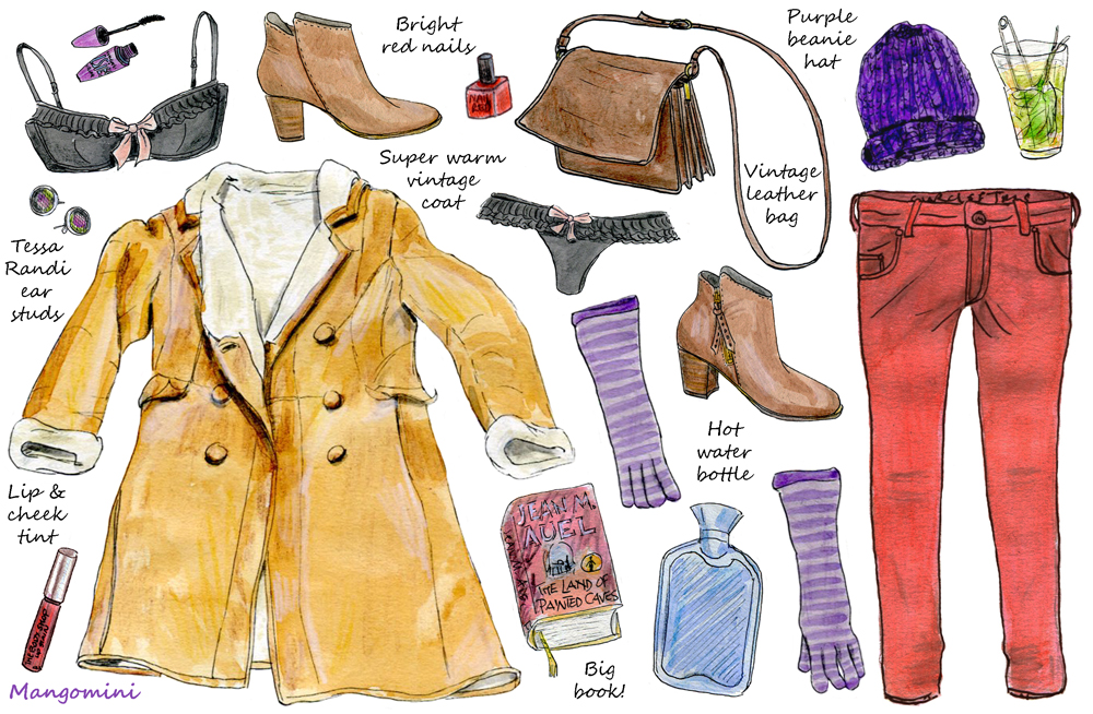 Wearing: underwear, H&M – boots, Steve Madden – bag, vintage – beanie hat, H&M – ear studs, TessaRandi – coat, vintage – skinny jeans, Circle of Trust. The gloves are so old I don’t remember where I got them.