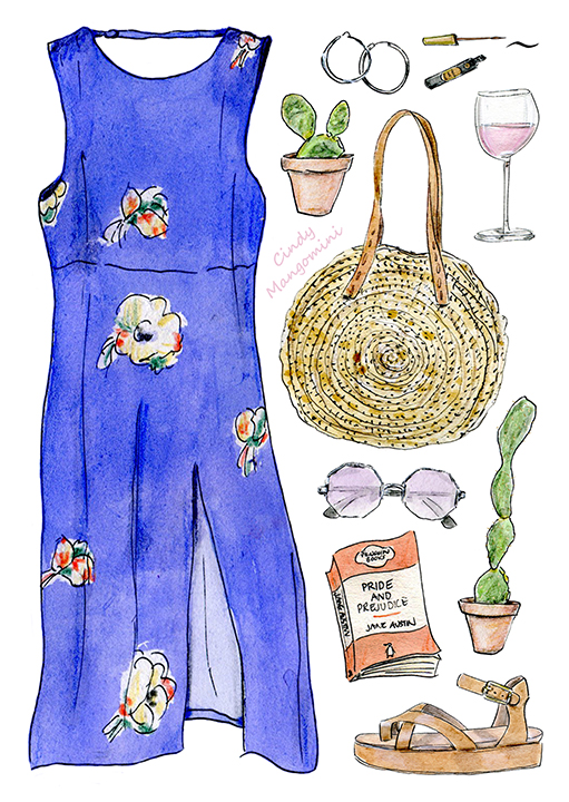 I still love this dress and the bag. I’ve added my favorite sandals, added new (vintage) sunglasses, my favorite silver hoop earrings and added a few little cactus planst that are growing fast this summer. Small changes this time, but which version do you prefer?