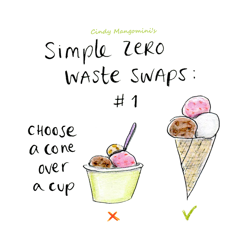 Going completely zero waste can be challenging, but there are so many little things that can already make a difference. Inspired by #plasticfreejuly, I’m going to be sharing some super simple zero (or low) waste swaps on here. Like choosing an ice cream cone over a cup. It saves a single use cup and a (plastic) spoon. Extra points for bringing your own cloth napkin! Come on, you can do this! ⁠💚🍦