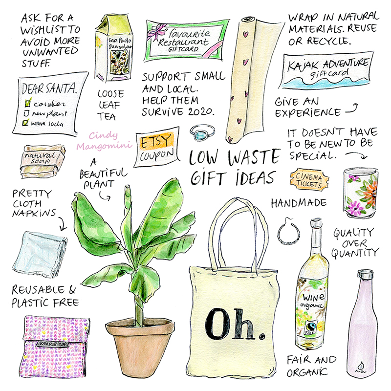 You can see more simple ways to reduce waste and save energy in this older hand drawn infographic. I also have a zero waste inspiration postcard available on Etsy.