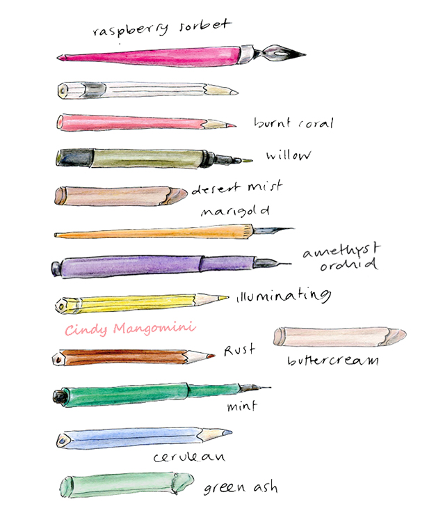 Every new season I like to take a look at the new color trend predictions and buy a few new paints or pencils in shades that I particularly like and want to use in my work. It will save me mixing time, and I love going to the art supply store.