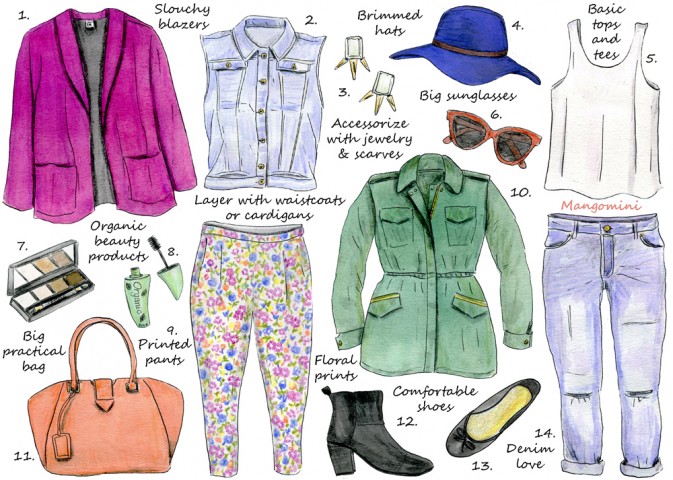 Seeing all the new spring collections online and in shops, is making me long for spring even more! Also, I’m just tired of my winter wardrobe. So, this week for Hello Giggles, I illustrated how to add some new spring items to your wardrobe right now, without freezing, a.k.a. in-between-weather wardrobe 😉